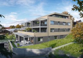 Zusätzlich zeichnen sich die Wohnungen durch helle Wohnräume mit offener Küche und Kochinsel, geräumige Zimmer, Reduit mit Waschmaschine und Tumbler sowie Aussenabstellräume ab. Jedes Geschoss ist bequem mit Lift erreichbar und somit rollstuhlgängig. Unter dem Gebäude wurde eine gemeinsame Einstellhalle erstellt.