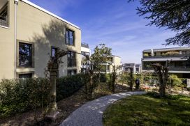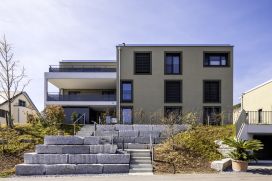 Wo einst ein Einfamilienhaus stand, wurde zwischen 2020 und 2022 eine nachhaltige Arealüberbauung mit 5 Mehrfamilienhäusern realisiert. Die gleichmässige Anordnung der "Punkthäuser" mit moderatem Fussabdruck, ermöglichte eine in dieses Gebiet gut eingepasste Überbauung.
