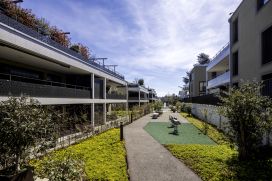 Über der zentralen Tiefgarage wurde für die Bewohner eine grosszügige "Piazza" als Spiel- und Begegnungszone geschaffen.